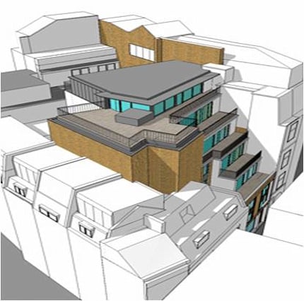 We increased the number of floors from 6 to 9, increasing floor area by 50%. The upper floors were stepped back in a ziggurat formation in response to neighbours' rights to light.